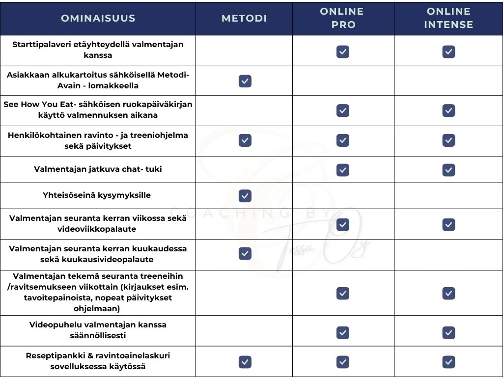 TÄSTÄ VOIT VERTAILLA ONLINE VALMENNUSTEN PALVELUSISÄLTÖJÄ